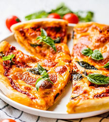Experience the culinary brilliance of Fusion Bistro, where every slice is a shining gem in the sky! Each pizza undergoes meticulous quality checks to ensure perfection before it leaves our kitchen. Handcrafted with care, our pizzas boast a symphony of fresh, crisp veggies and succulent meats, all nestled atop dough freshly made each day.